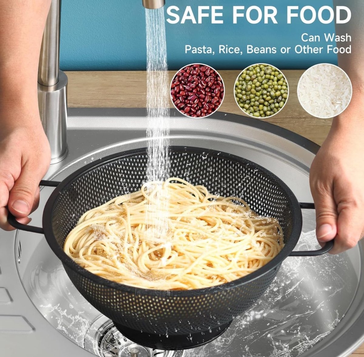حجم صغير عملي – مناسبة لتصفية الخضار – بيد لسهولة الاستخدام – خامة متينة وسهلة التنضيف