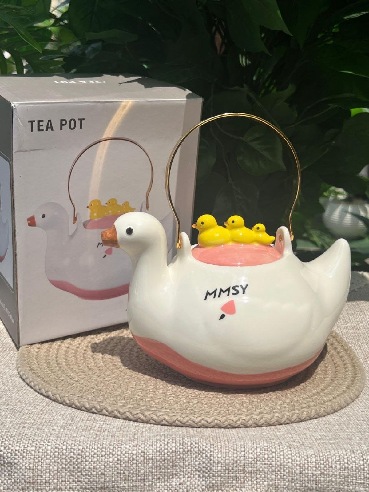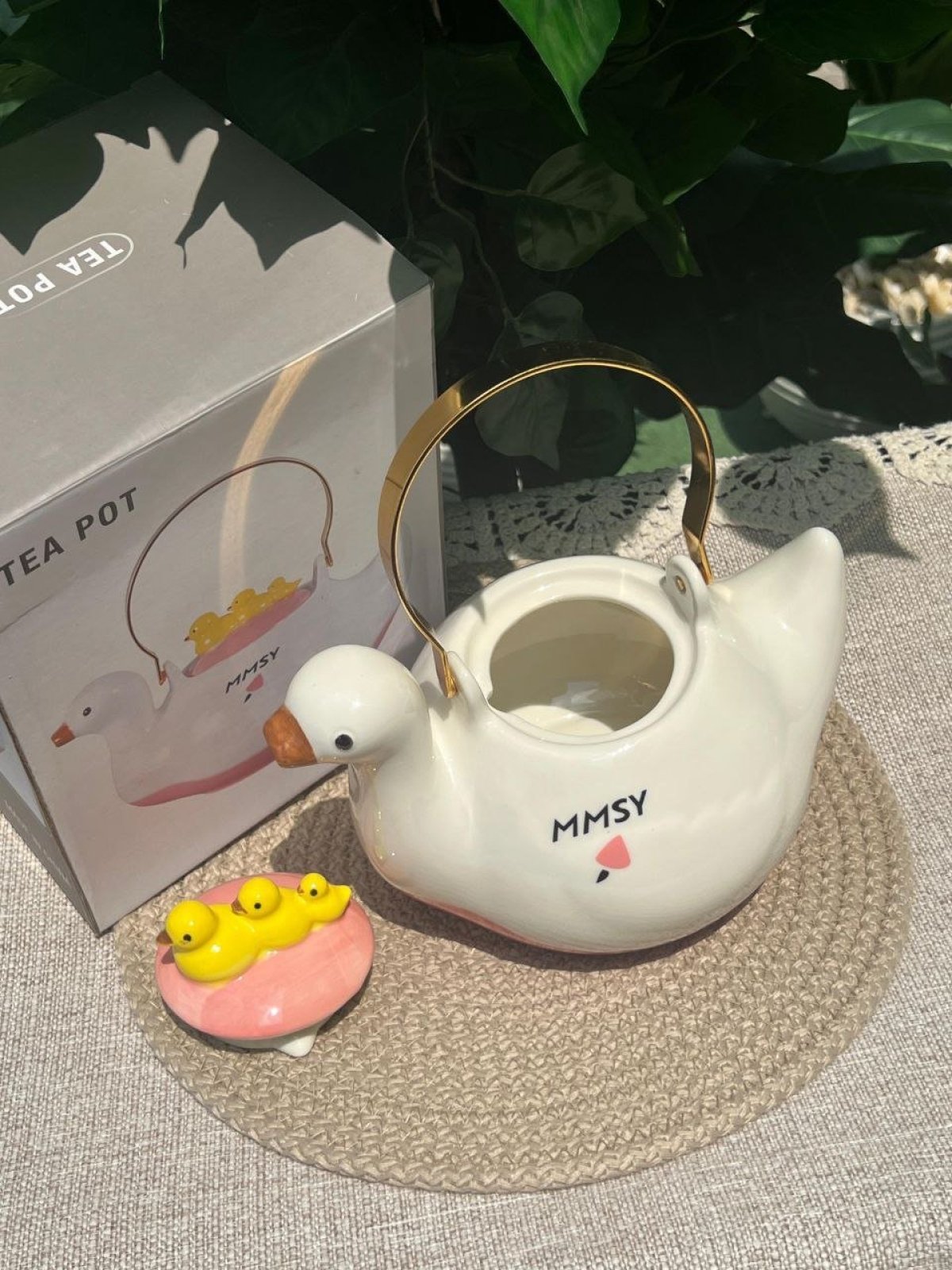 براد بطوط وأولادها براد بورسلين شيك جدًا بمقبض استالس جولد، ومعاها غطاء بورسلين مرسوم عليه 3 بطاطيط صغننين شكلهم كيوت شكل فخم ولمسة مبهجة لمطبخك، وتنفع للتقديم كمان.