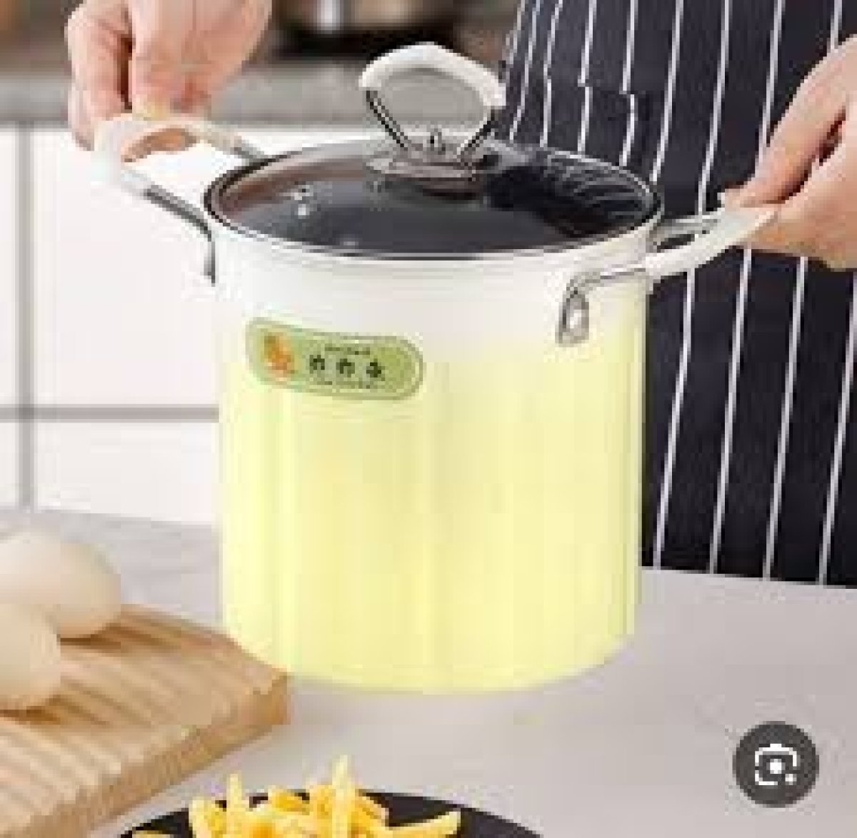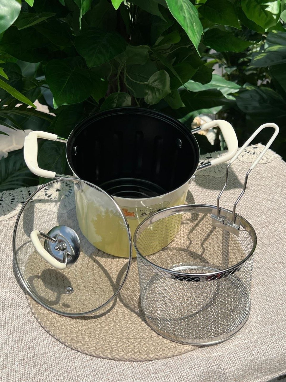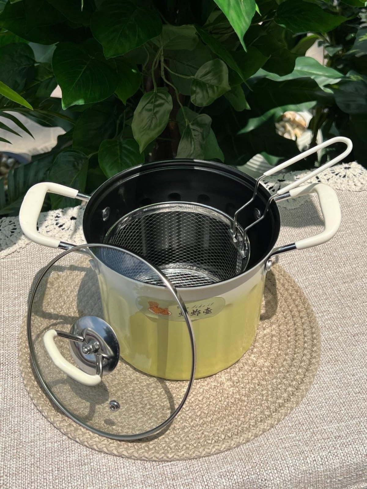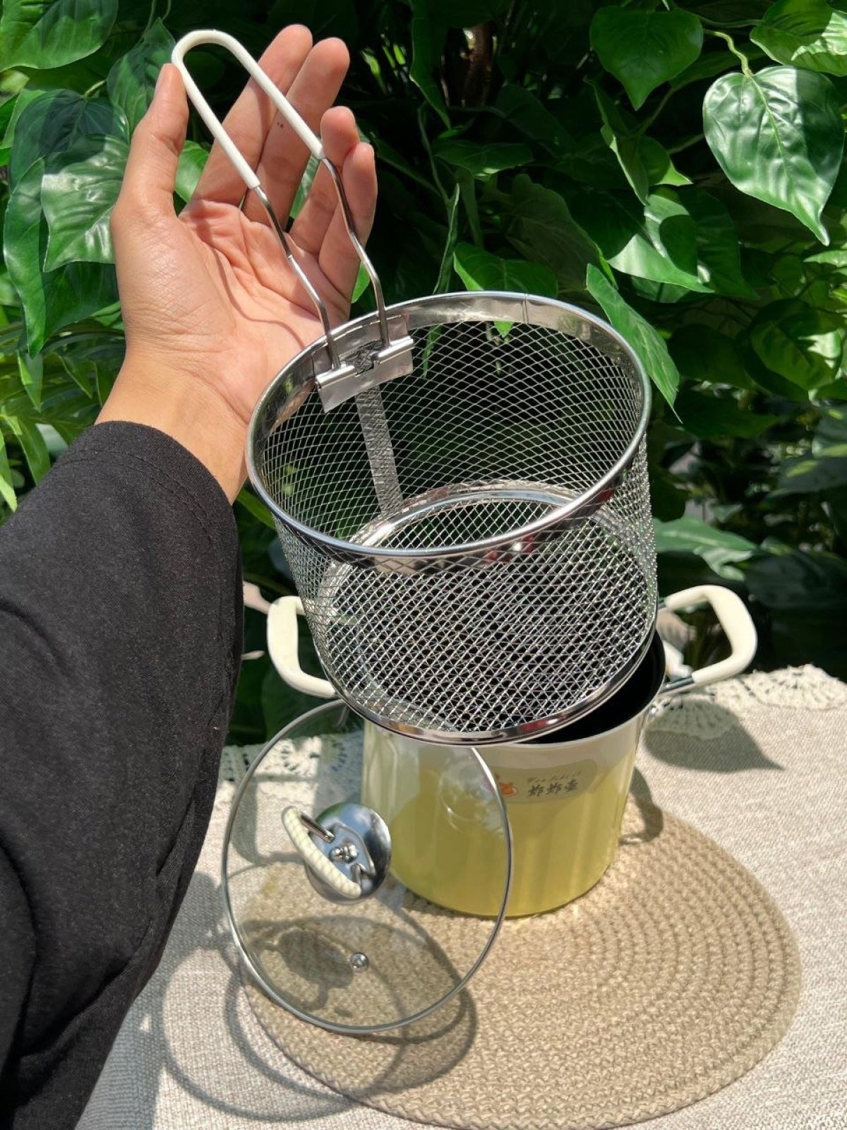 رجعت تاني حلة بطوط الأستايل حلة بطاطس أو فراخ للقلي، فيها قطعة استالس داخلية بمقبض علشان تصفي بسهولة بعد القلي من غير تعب خامة قوية، شكل شيك، استخدام عملي يومي.