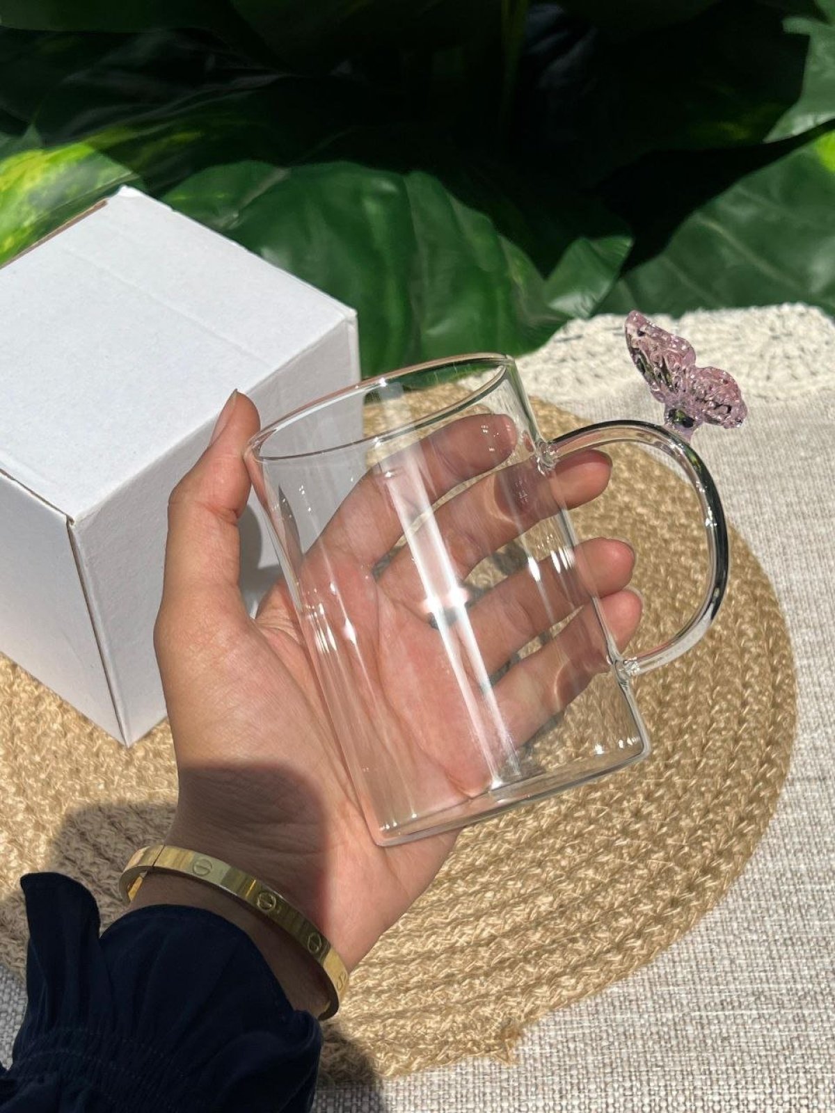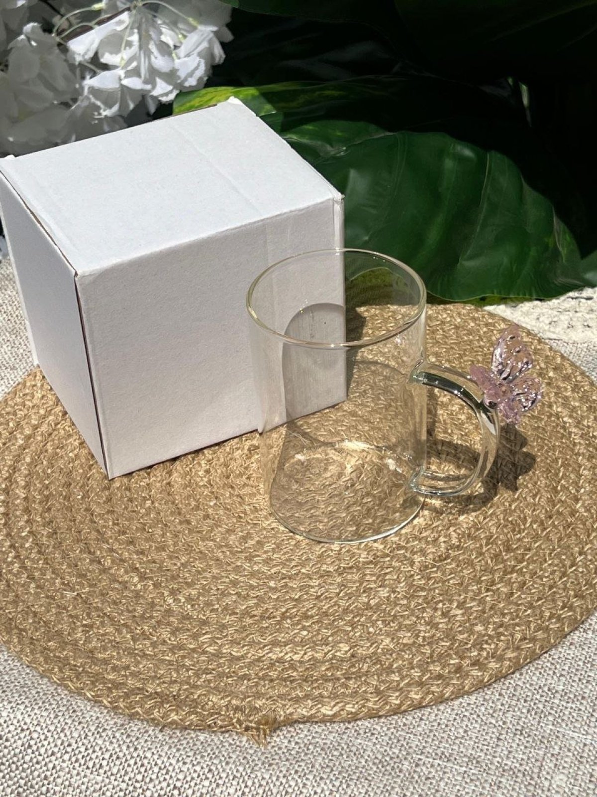 • تصميم هادي وسادة بلمسة رقيقة • فراشة على اليد بتدي شكل ناعم ومميز • زجاج بيركس يتحمل السخونة • ينفع للقهوة، الشاي، أو أي مشروب بتحبيه • هيكمل طقم الكوفي كورنر عندك بجماله