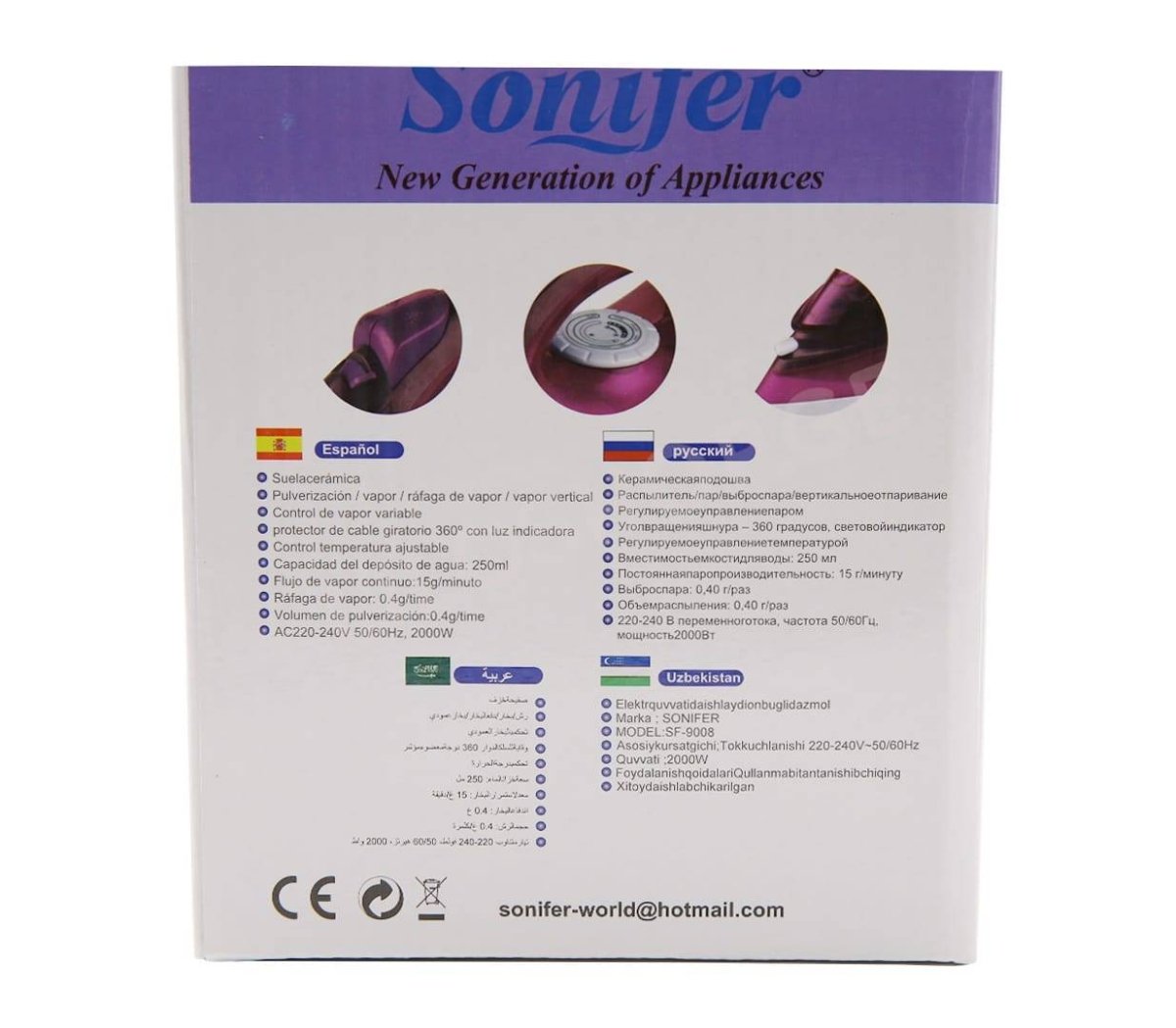 هذه مكواة بخار كهربائية من ماركة سونيفر (Sonifer)، موديل SF-9008.