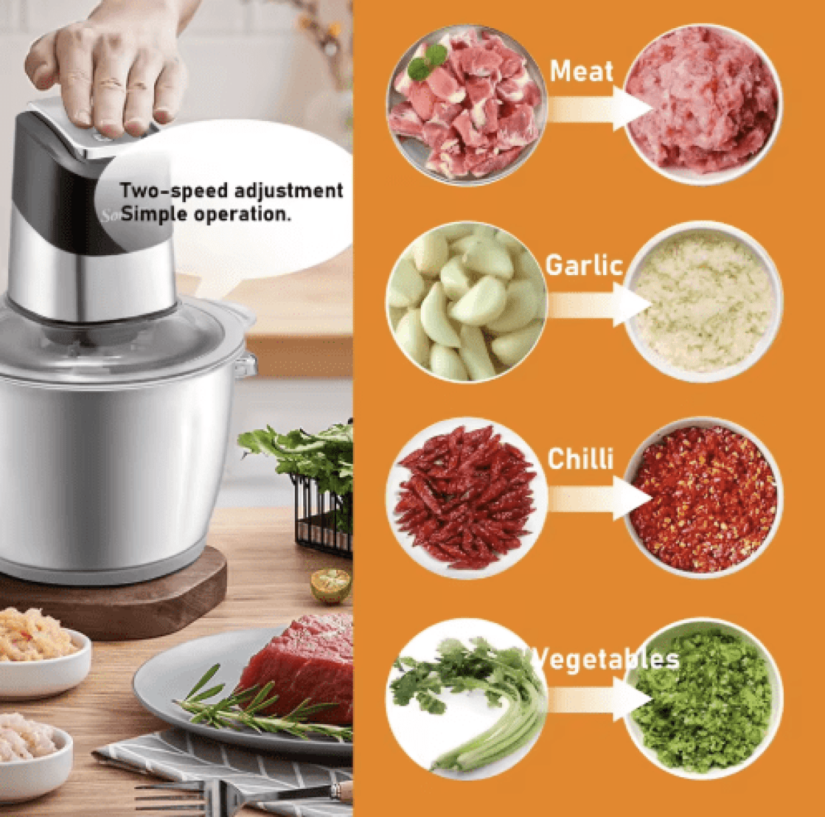 هذه مفرمة طعام كهربائية من ماركة Sonifer، موديل SF-8135. . السعة: 2.8 لتر. القدرة الكهربائية: 400 وات. المادة: وعاء من الستانلس ستيل. المميزات: تحتوي على 4 شفرات حادة للفرم والتقطيع.