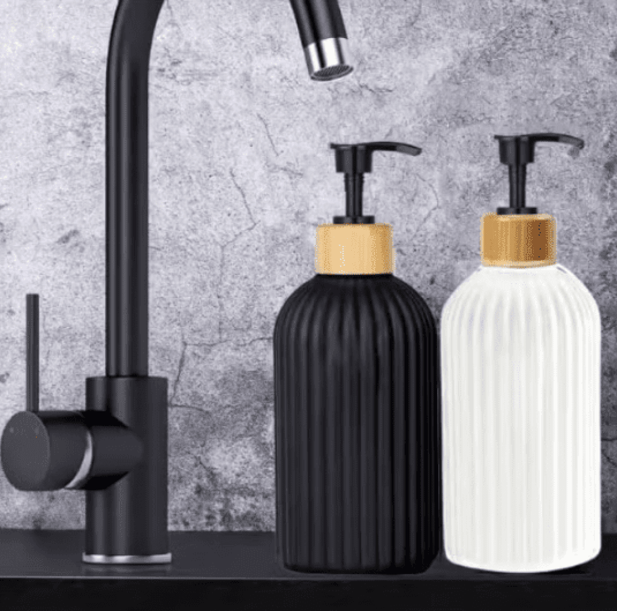 موزعات صابون سائل زجاجية بتصميم مضلع ومضخات خيزران، مناسبة للاستخدام في المطبخ أو الحمام لتخزين الصابون أو اللوشن.