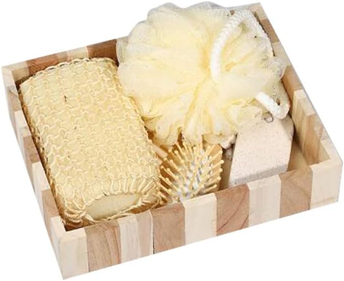 يحتوي على: فرشاة شعر خشبية، ليفة طبيعية، وباند شعر أنيق - مثالي لروتين العناية اليومي ولمسة من الدلع لنفسك - خامات طبيعية وآمنة لبشرة ناعمة ونضرة