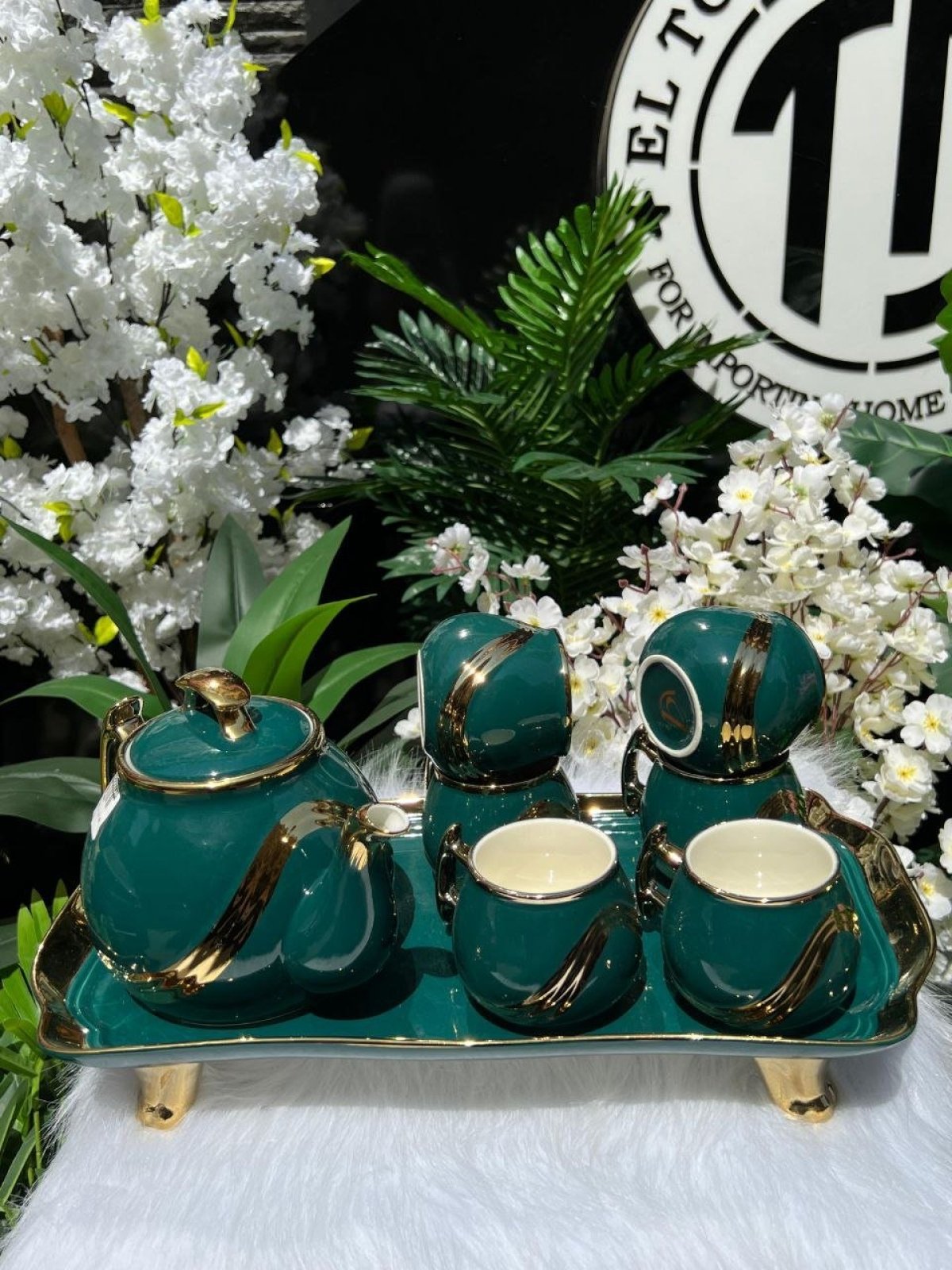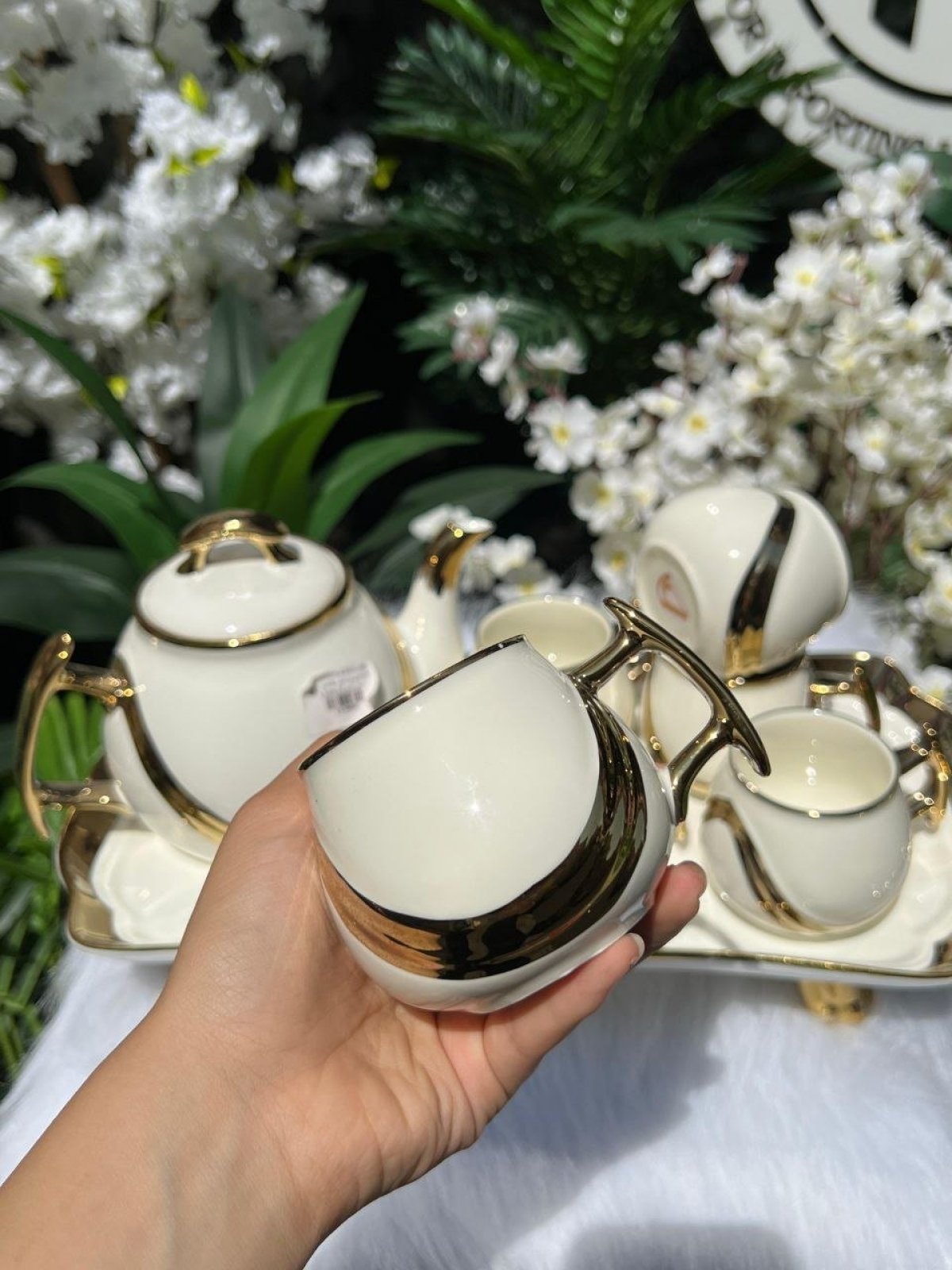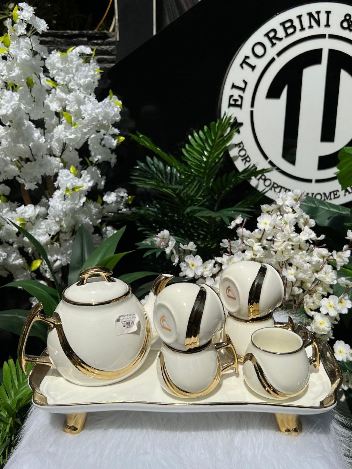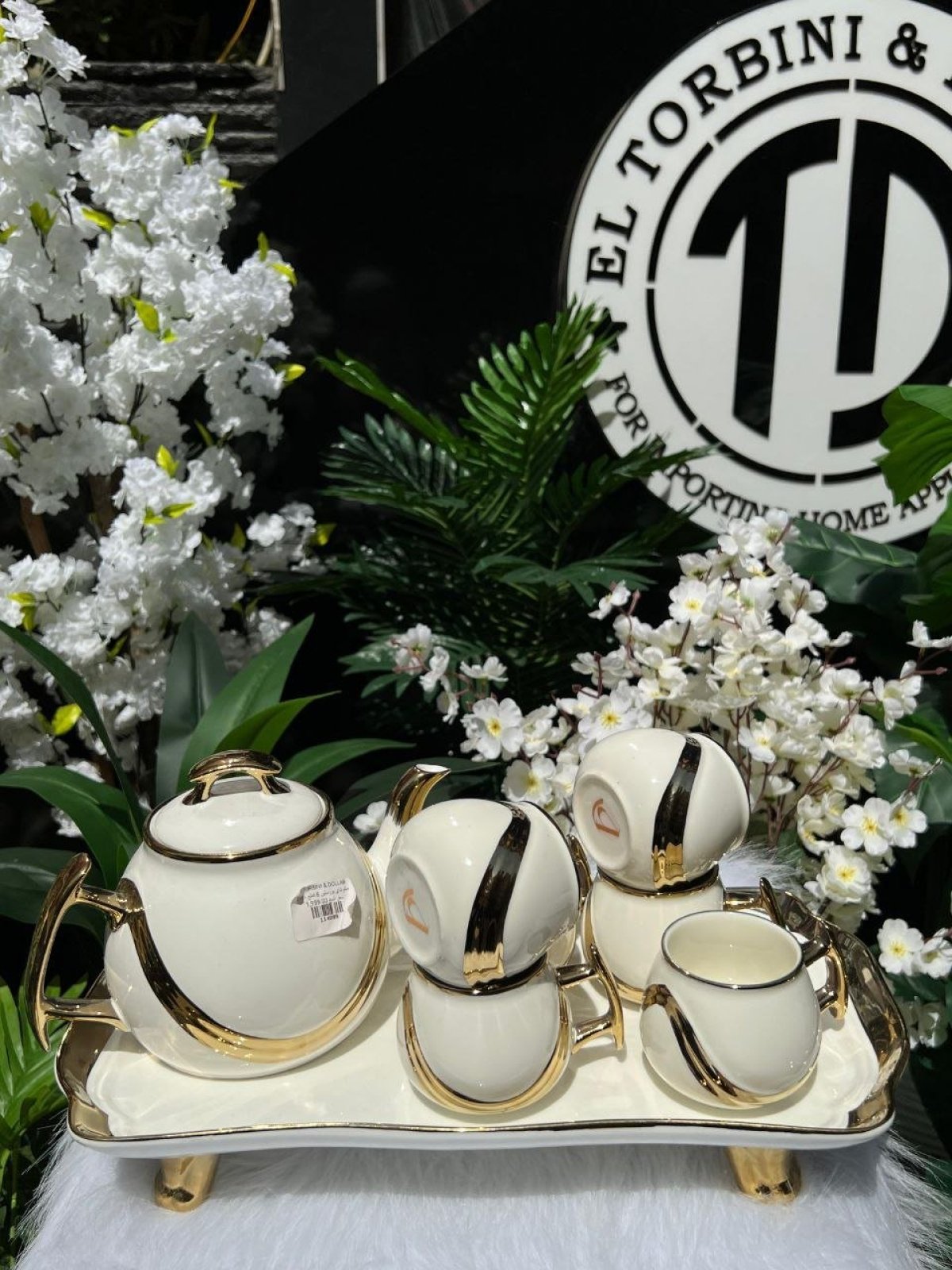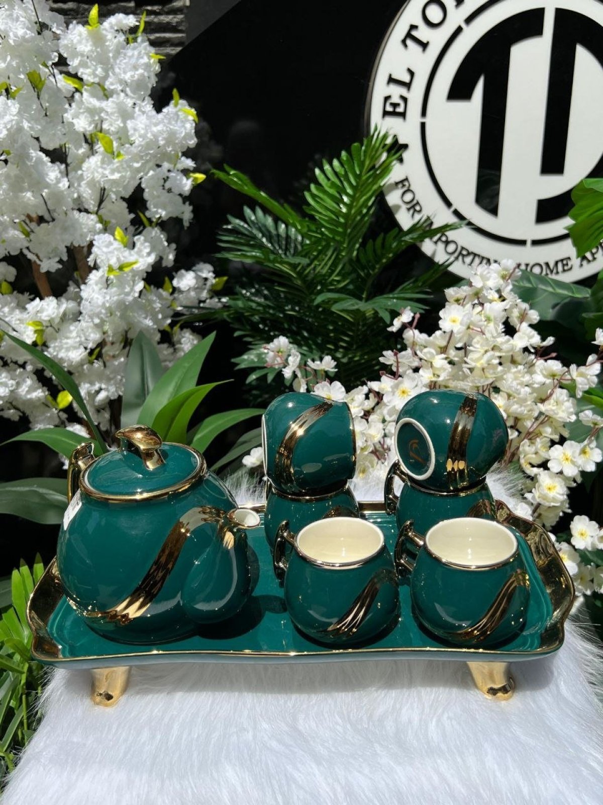 طقم شاي بورسلين مكون من8قطع، 6فناجين، براد كبير، صينيه تقديم🤍 شكله شيك جداً وقيم🤍