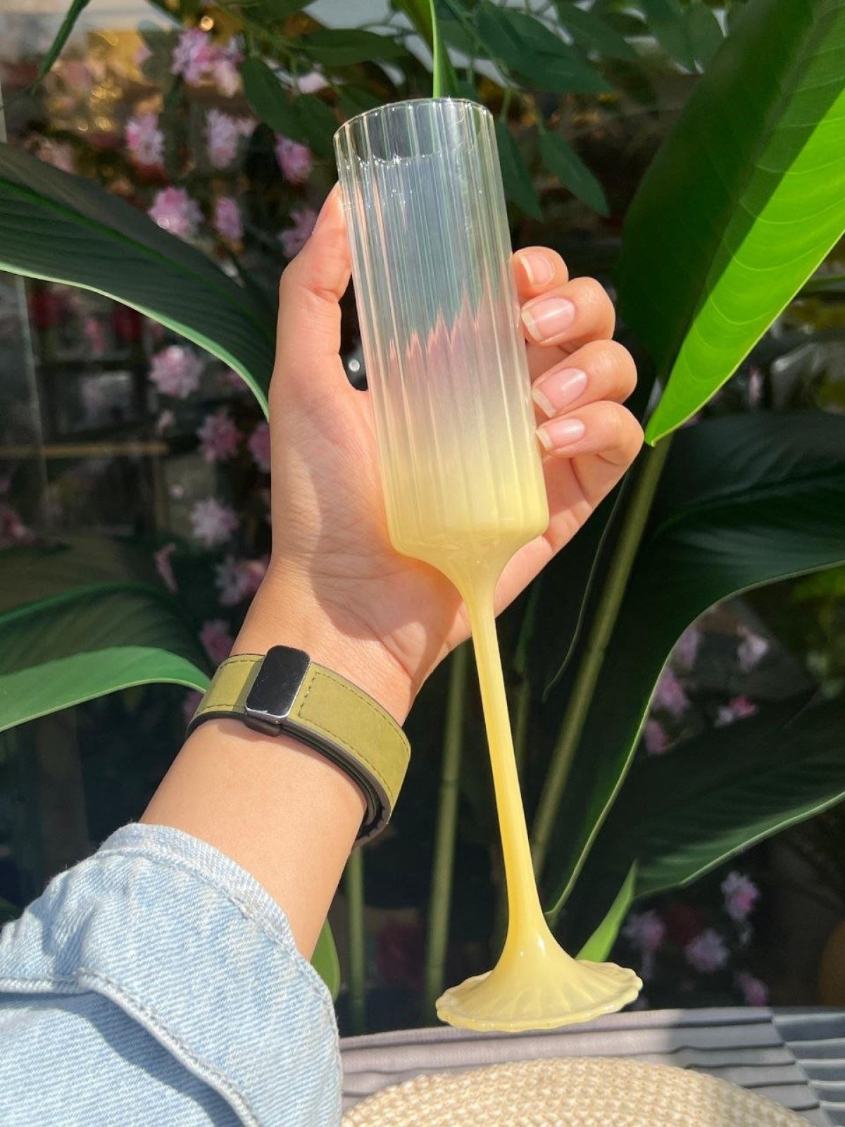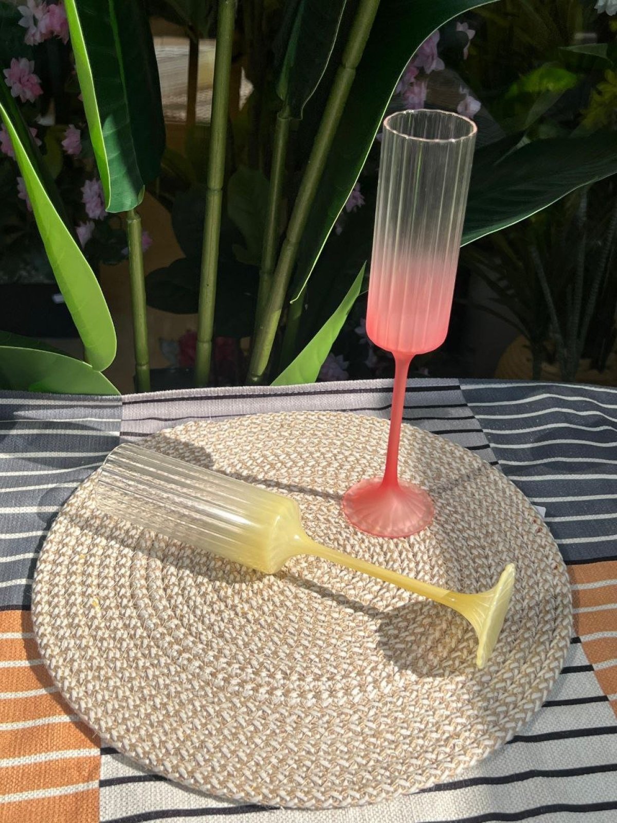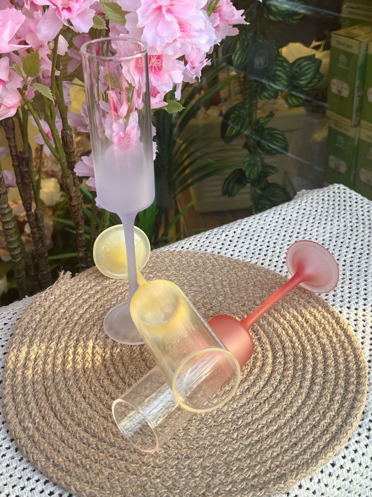 احتفل بأناقة مع هذه الكؤوس الزجاجية الفريدة ذات التصميم العصري والألوان المتدرجة الهادئة (مثل البنفسجي، الوردي، والأصفر). تتميز بقاعدة و ساق ملونين يتدرجان إلى جسم زجاجي شفاف، مما يخلق تأثيرًا بصريًا مذهلاً. مثالية لتقديم الشمبانيا، المشروبات الفوارة، أو أي كوكتيل تفضله في المناسبات الخاصة، الحفلات، أو حتى للعشاء الرومانسي. أضف لمسة من الفخامة والتميز إلى مجموعتك من أدوات التقديم.