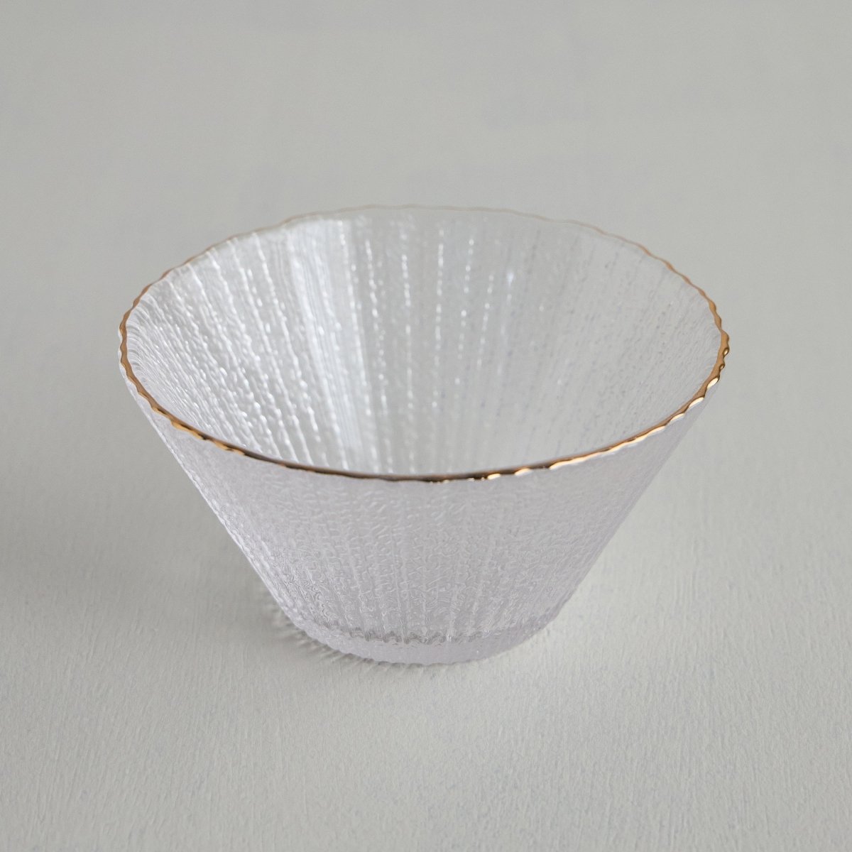 أضف لمسة من الأناقة والتميز إلى مائدتك مع هذا الوعاء الزجاجي الشفاف ذو التصميم المميز. يتميز بتصميم فريد مع خطوط طولية بارزة وحافة علوية سوداء اللون تضفي عليه مظهرًا عصريًا وراقيًا. مثالي لتقديم الوجبات الخفيفة، المكسرات، السلطات الجانبية، أو حتى كوعاء ديكوري في منزلك.