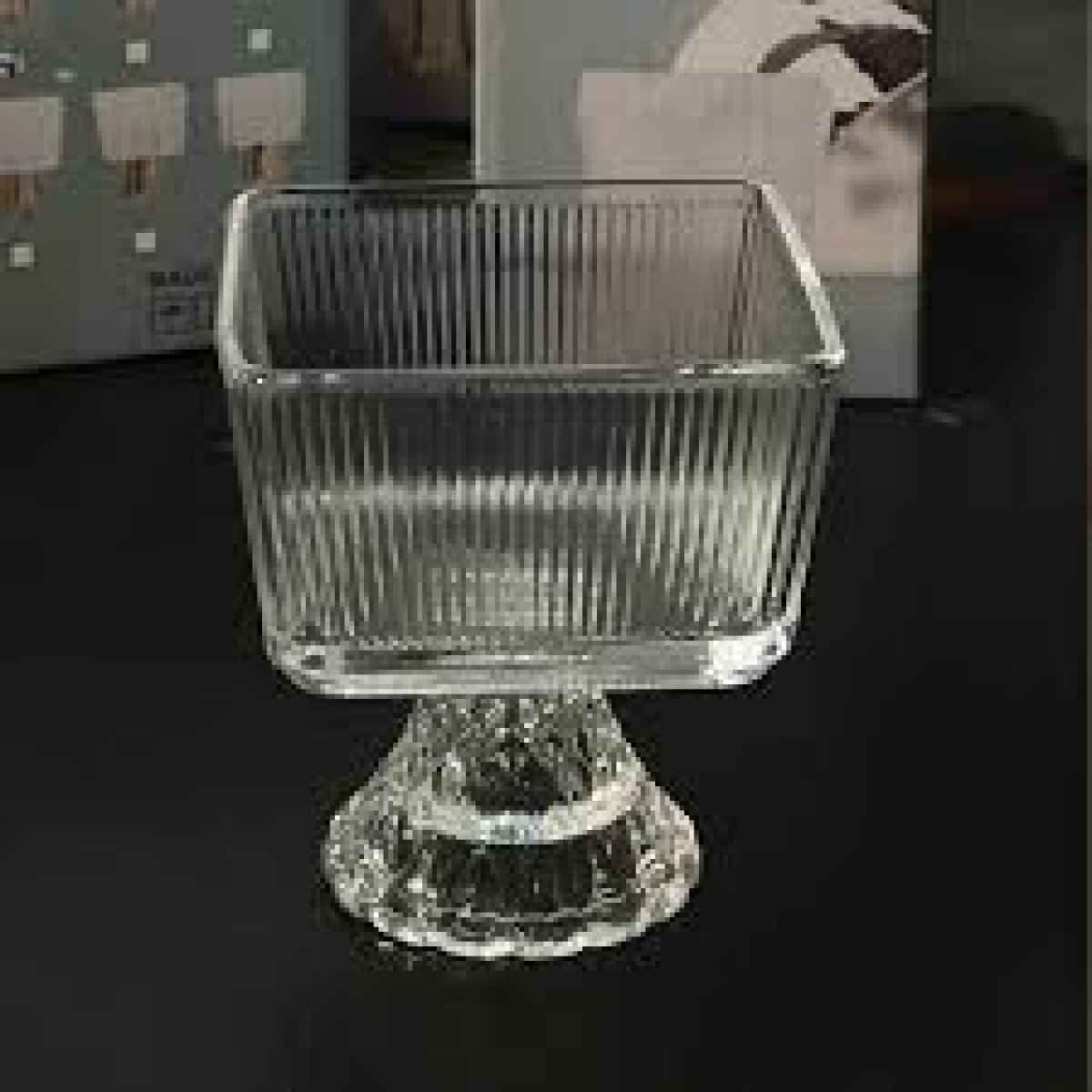 أضف لمسة من الرقي إلى مائدتك مع هذا الوعاء الزجاجي الشفاف ذو التصميم الكلاسيكي. يتميز الوعاء بجزء علوي مربع الشكل بخطوط طولية أنيقة، وقاعدة مزخرفة بنمط ماسي يضفي عليه مظهرًا فخمًا. مثالي لتقديم الحلويات، الفواكه الصغيرة، المكسرات، أو المقبلات، مما يجعله إضافة مثالية لمناسباتك أو للاستخدام اليومي الفاخر.