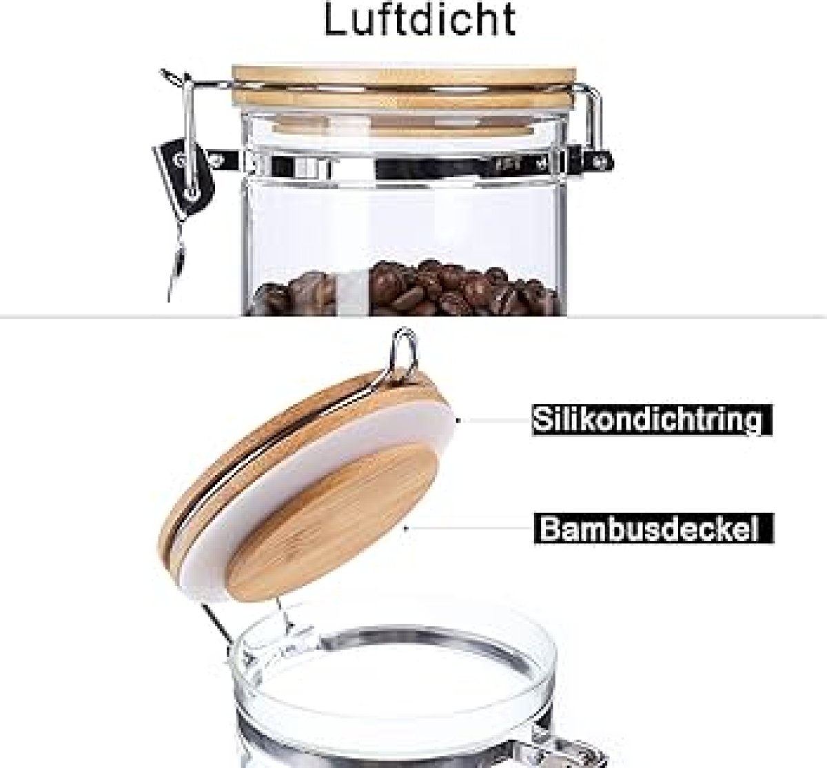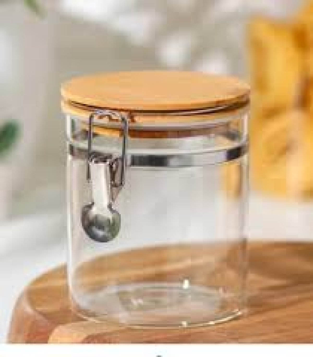 برطمان زجاجي شفاف محكم الإغلاق بغطاء خشبي ومشبك معدني - لتخزين أنيق وعملي!