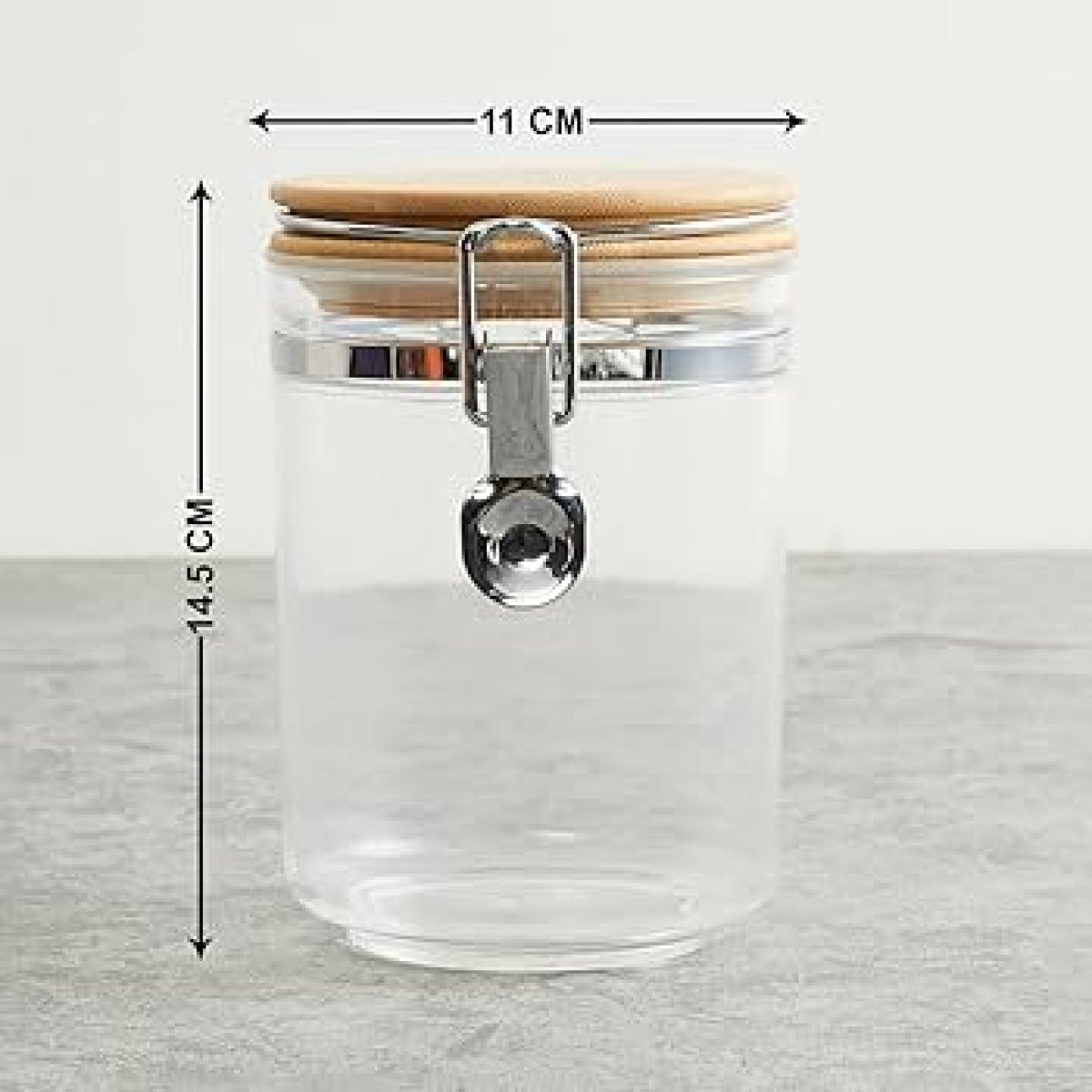 حافظ على طعامك طازجًا ومنظمًا مع هذا البرطمان الزجاجي الشفاف الأنيق. يتميز بغطاء خشبي طبيعي ومشبك معدني قوي يضمن إغلاقًا محكمًا، مما يجعله مثاليًا لتخزين القهوة، الشاي، التوابل، السكر، البسكويت، أو أي مواد جافة. تصميمه العصري والبسيط يجعله إضافة جمالية لأي مطبخ أو مخزن.
