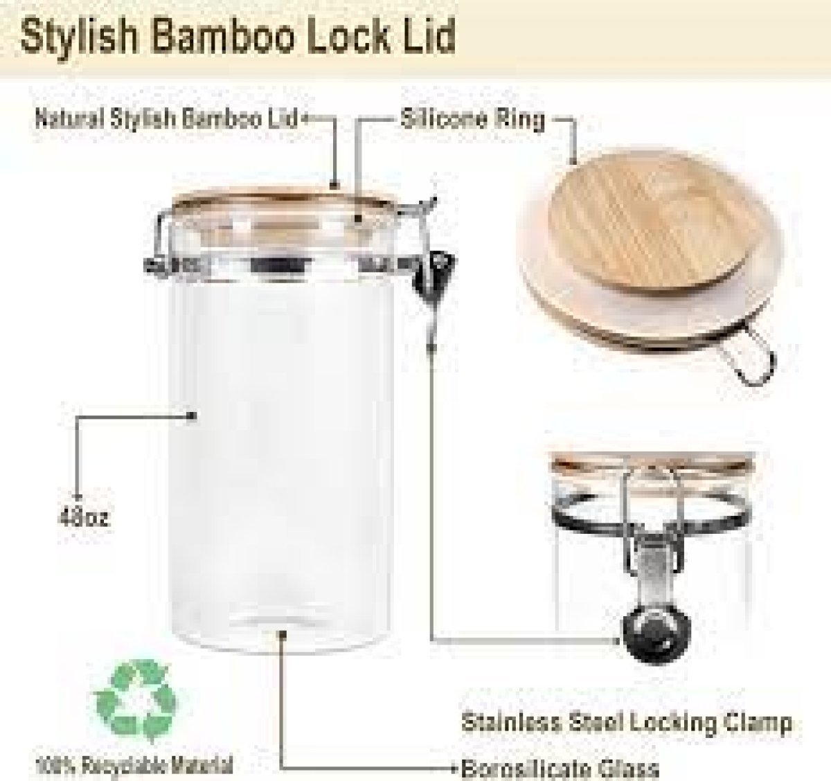 برطمان زجاجي فاخر بغطاء من الخيزران ومشبك محكم - لتخزين أنيق ومستدام!