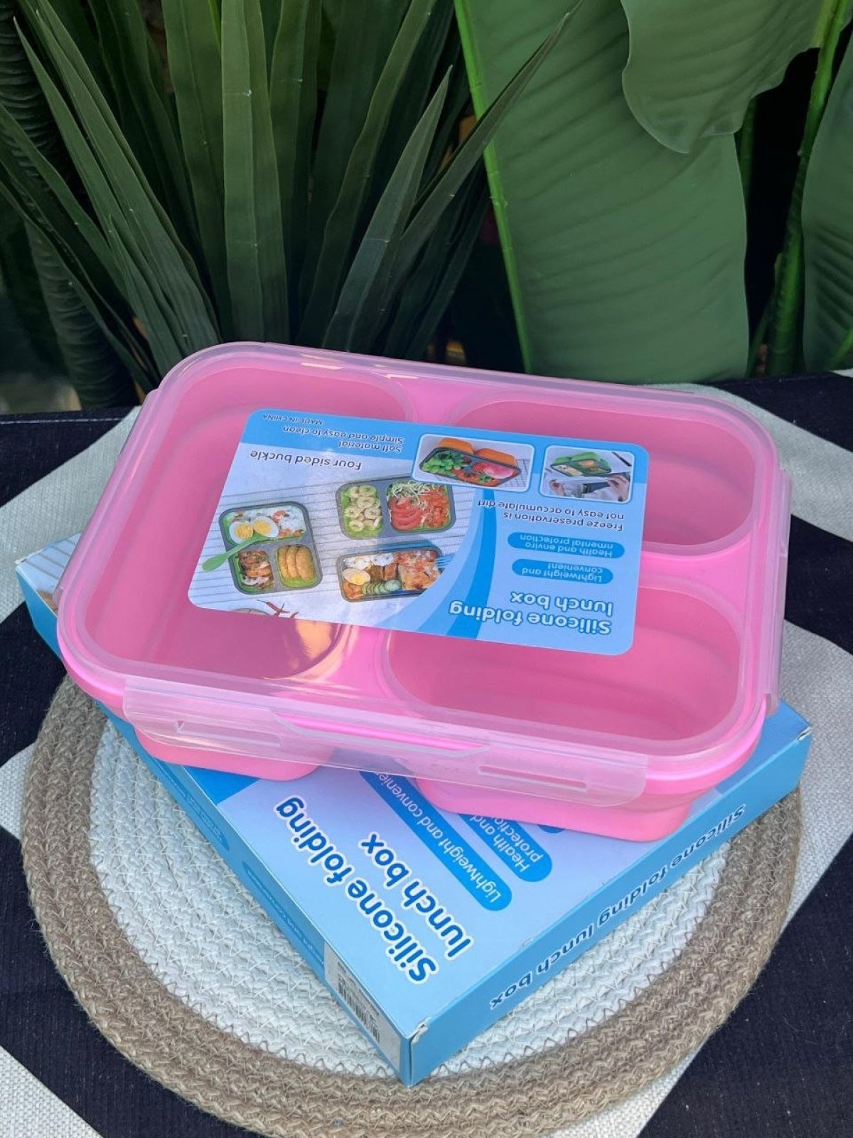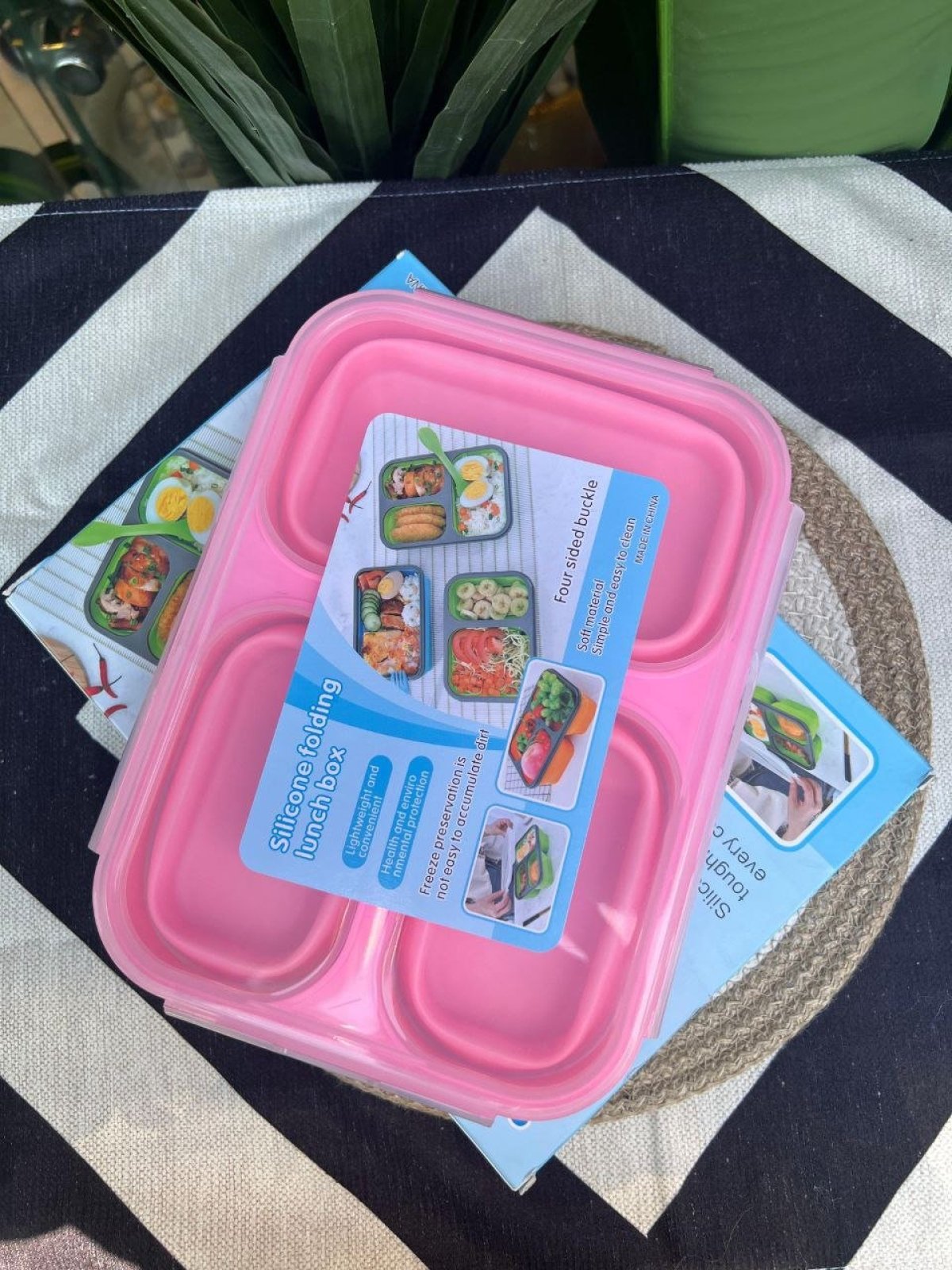 لانش بوكس سيليكون متقسم 3 خانات 🍱 ينفع للمدرسة أو الشغل، عملي وخفيف وسهل التنضيف. الخامات آمنة للأكل، وبيتحمل الحرارة كمان.