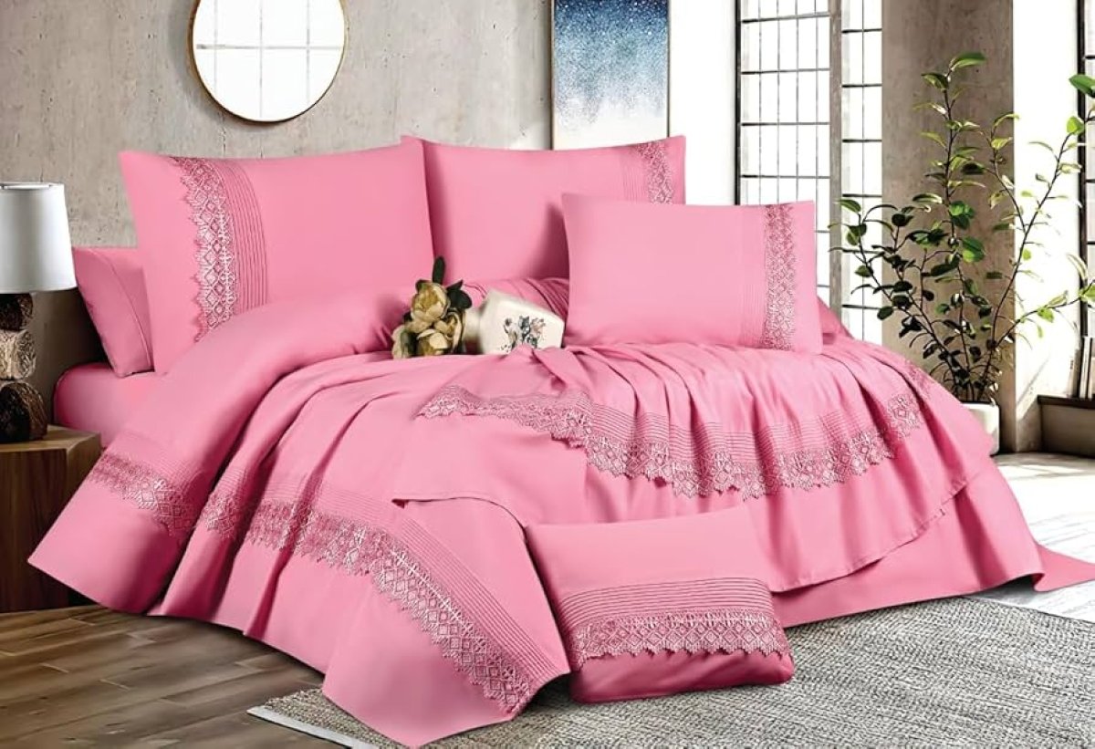 طقم مفروشات سرير وردي "فخامة وأناقة" - لتجربة نوم ملكية!