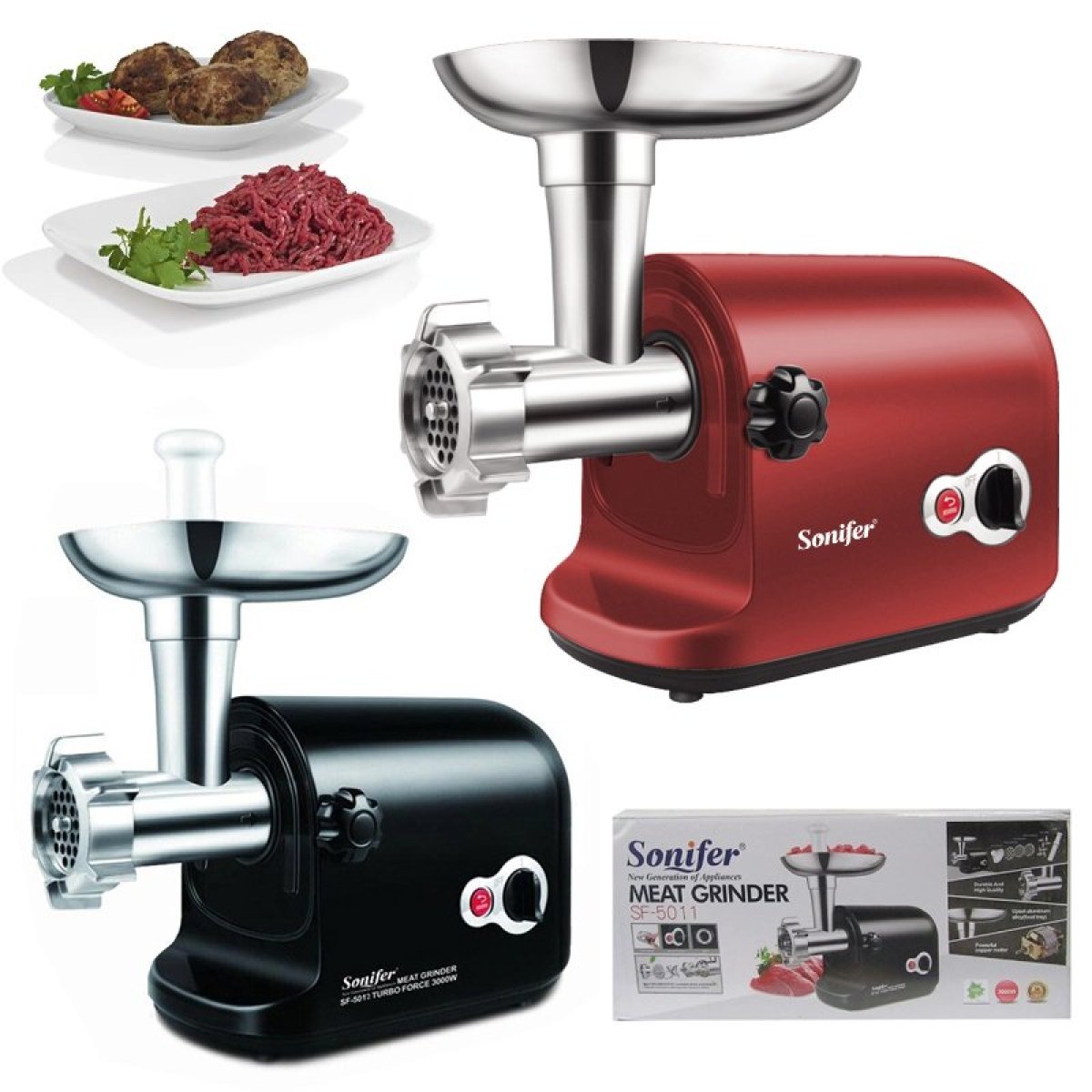 المواصفات الرئيسية لمفرمة Sonifer SF-5012: . القوة الكهربائية: 3000 واط (أقصى قوة مقفلة). الجهد الكهربائي: 220-240 فولت، 50/60 هرتز. المميزات التشغيلية: نظام بسرعتين (Dual Speeds) مع وظيفة العكس (Reverse) لإزالة أي انسدادات. رأس فرم من الفولاذ المقاوم للصدأ وصينية لحم معدنية. أقدام مطاطية لمنع...