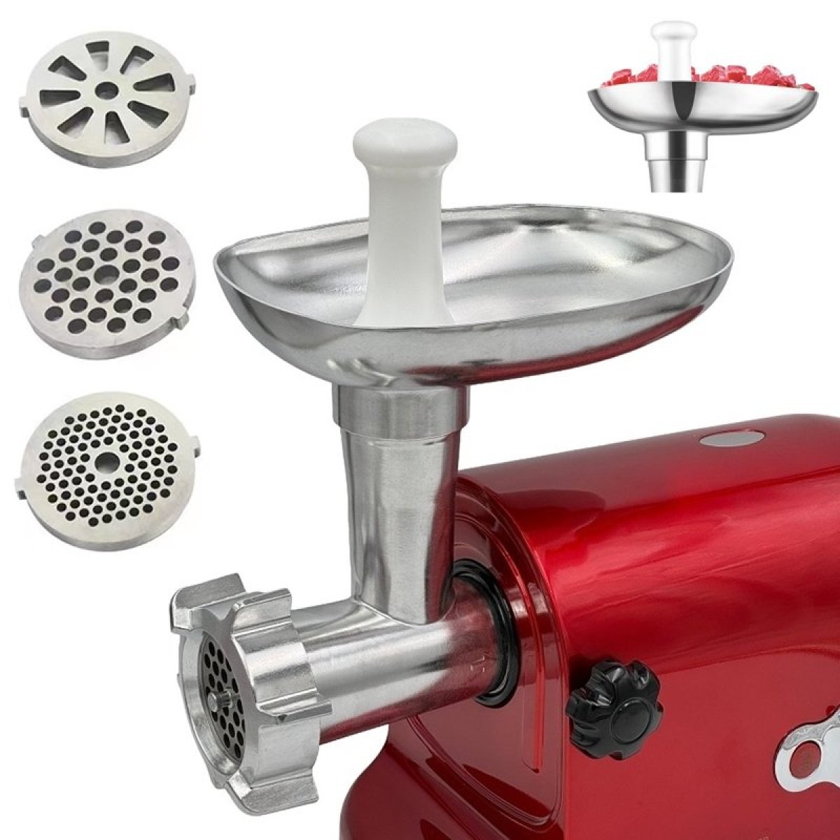 • الملحقات: تأتي عادة مع 3 أقراص فرم (ناعم، متوسط، خشن)، وملحقات لصنع السجق والكبة.
